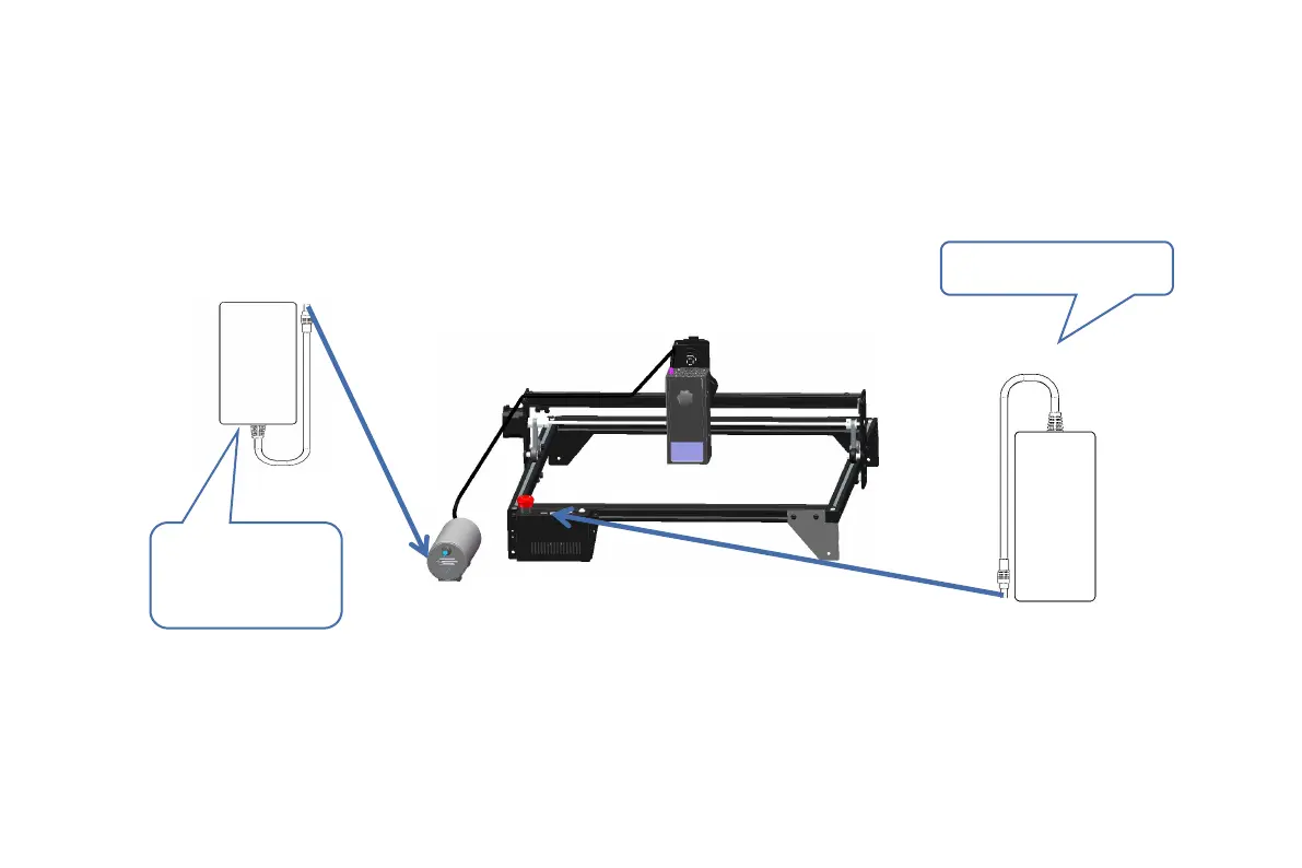 Der Original-Lasergravurmaschinenadapter des Benutzers wird an die Luftpumpe angeschlossen; Der mit
