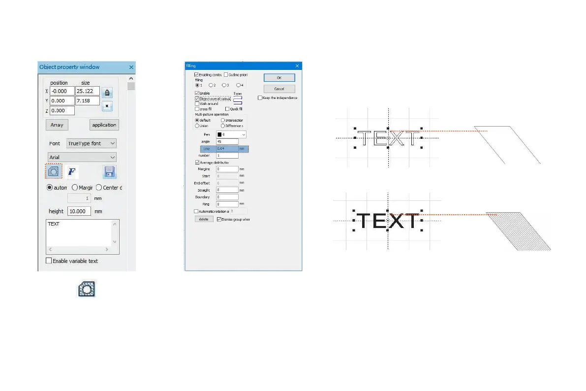2. Il n'est pas nécessaire de définir d'autres paramètres pour la gravure de texte. Seule la "ligne" doit être changée. La valeur par défaut est 0.04.