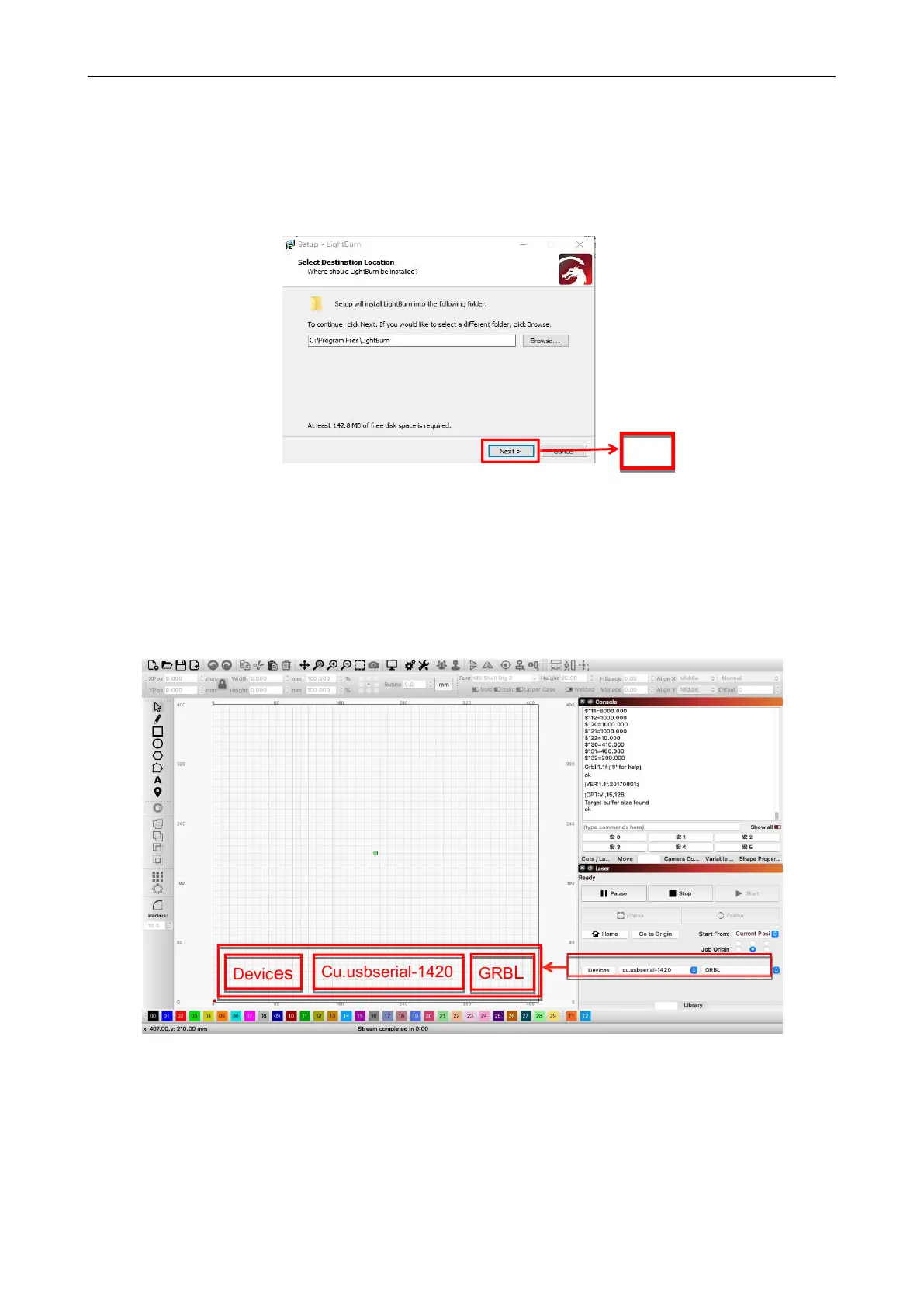 *A. Starten Sie LightBurn, verbinden Sie den Graveur und den Computer, auf dem