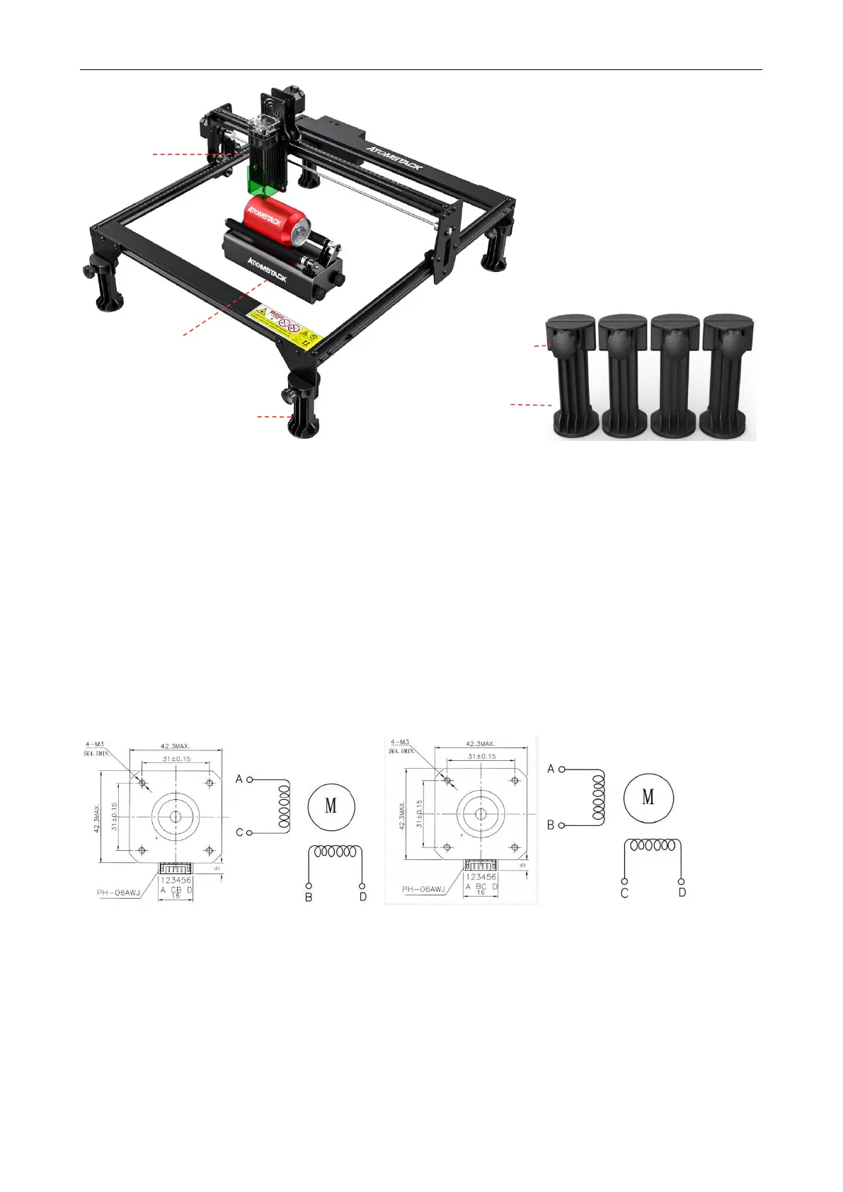 2.1 Der 4 PIN weiße Stecker ist für die Verbindung mit Nasum, AtomStack Graveur.