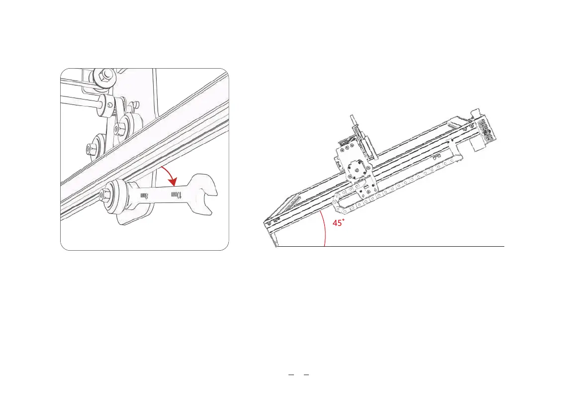 Une fois le support fixé, soulevez une extrémité de la machine à un angle de 45 degrés avec le plan horizontal, puis relâchez le