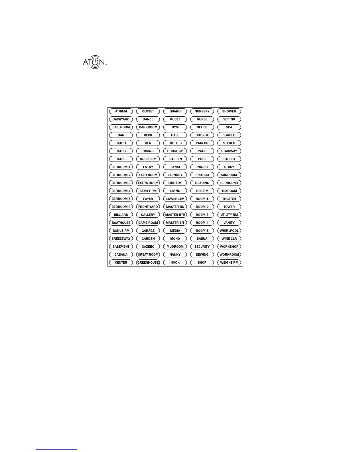 the labels in the oval Room Label Locations located below the Room Select Buttons.