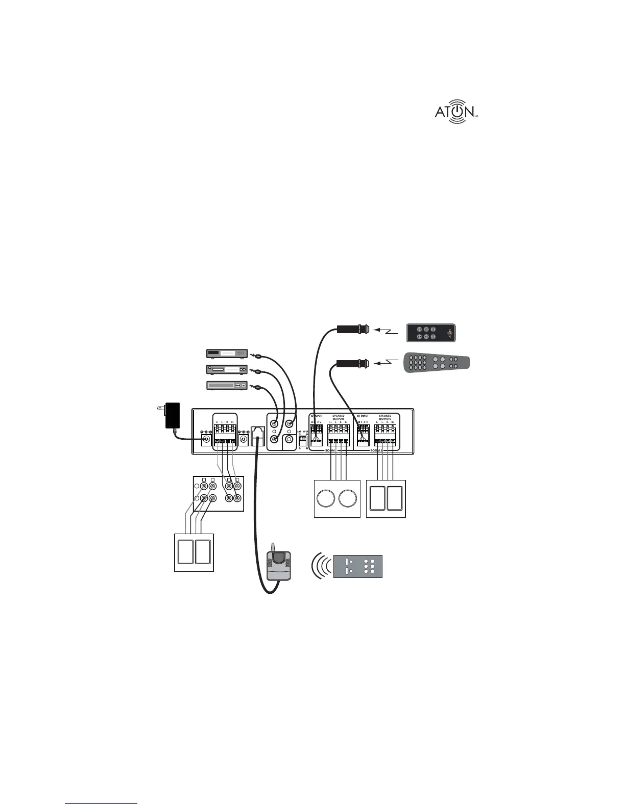 Figure 2-1 shows a DLA2 connected to an A/V receiver with optional ATON accessories includ-