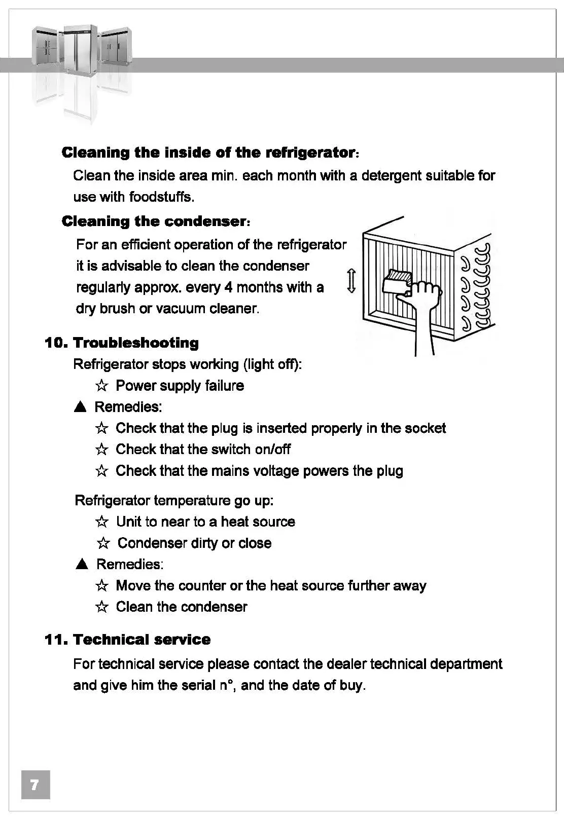 technical service please contact the dealer technical department