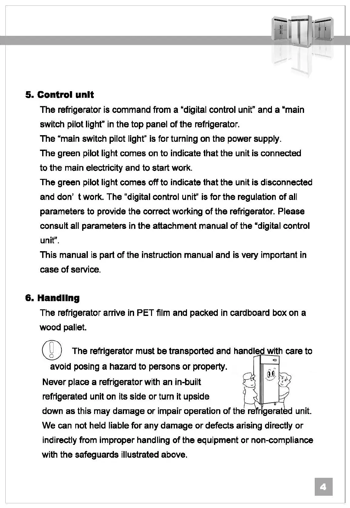 ® The refrigerator must be transported