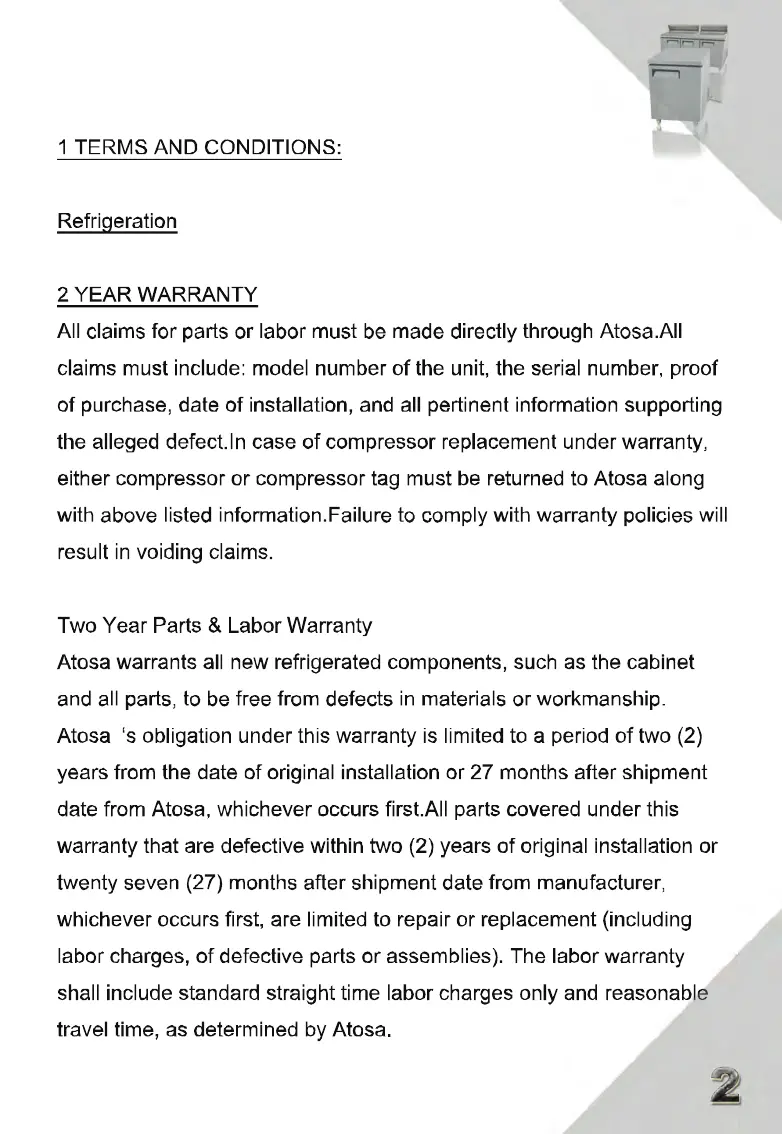 Atosa MGF8403GR - Terms and Conditions and Warranty; Two Year Parts & Labor Warranty