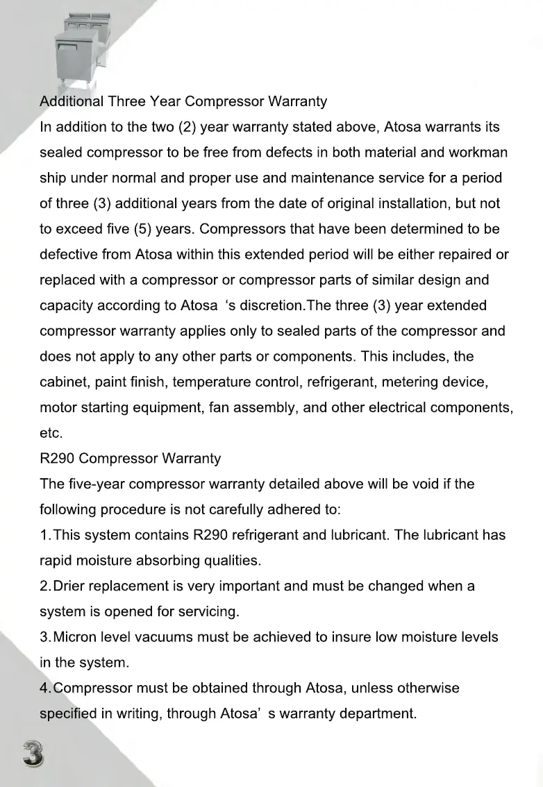 Atosa MGF8403GR - Extended Compressor Warranty