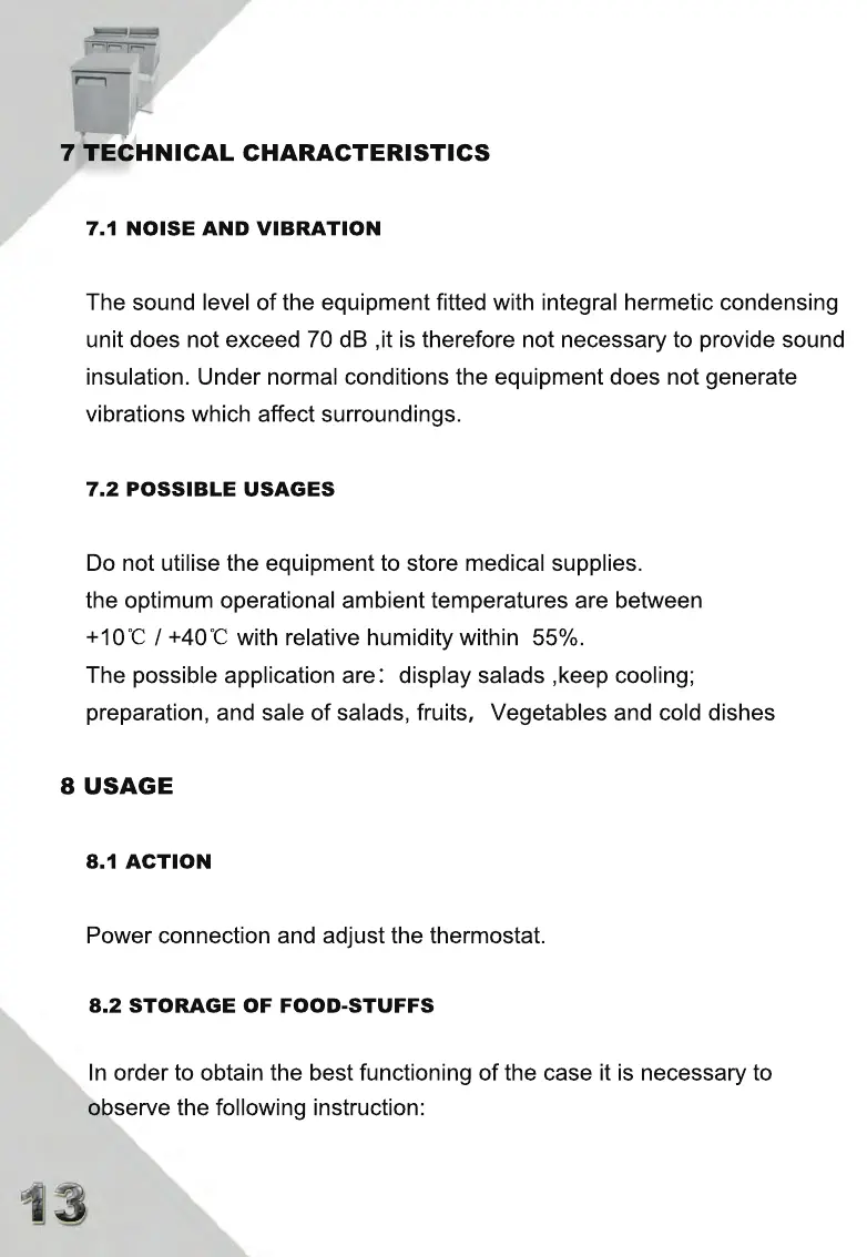 Atosa MSF8302GR - 8 USAGE; 8.1 ACTION; 8.2 STORAGE OF FOOD-STUFFS