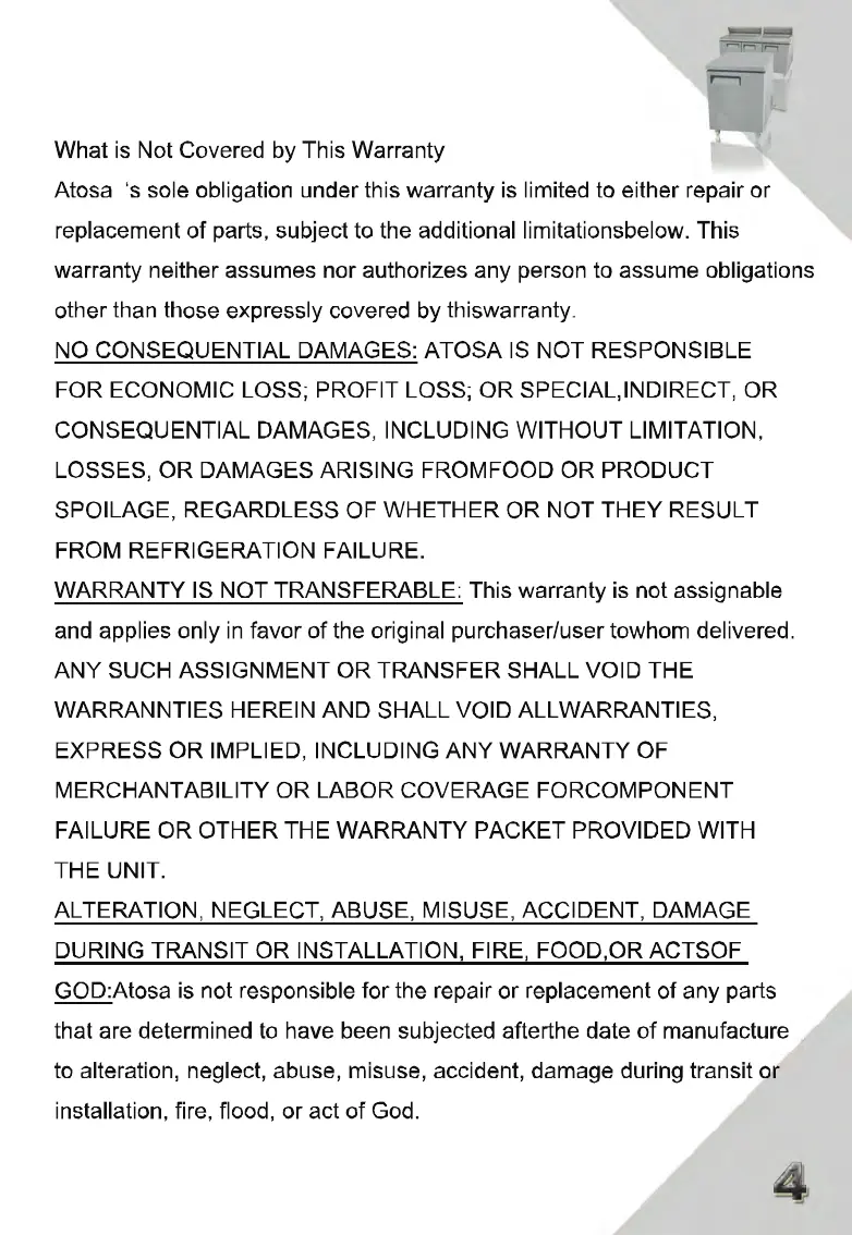Atosa MSF8303GR - What is Not Covered by This Warranty