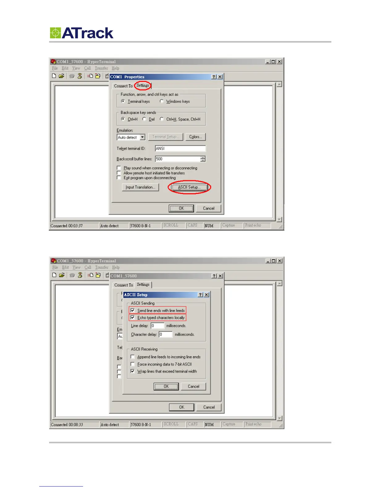 (4) Click on the [Settings] tab and click on the [ASCII Setup…] button.