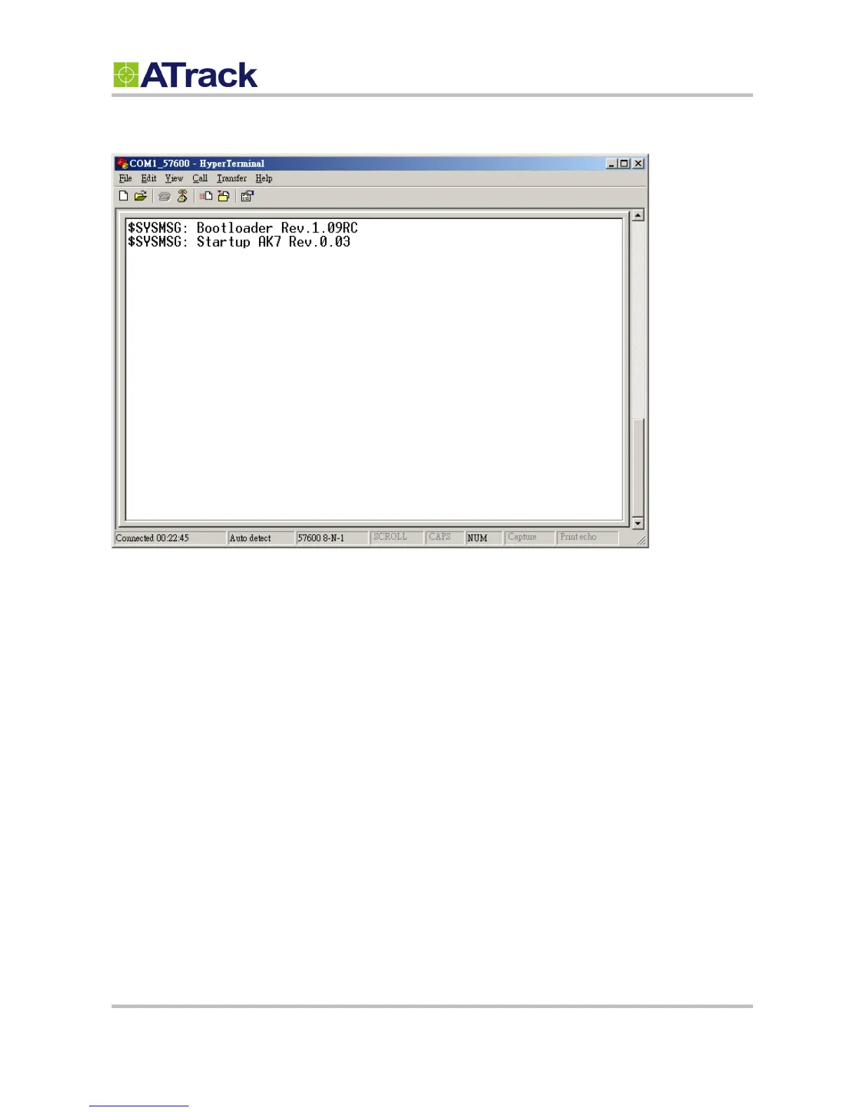 (6) Power ON the device and the startup message will be displayed on the screen. You may type some AT