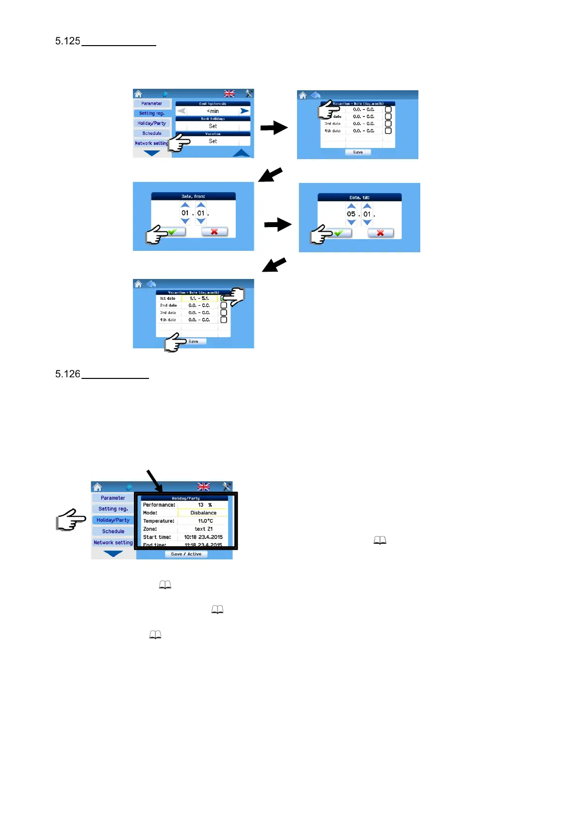 Start time: The starting time of the mode may be delayed; the Holiday/Party mode starts according to the start time set.
