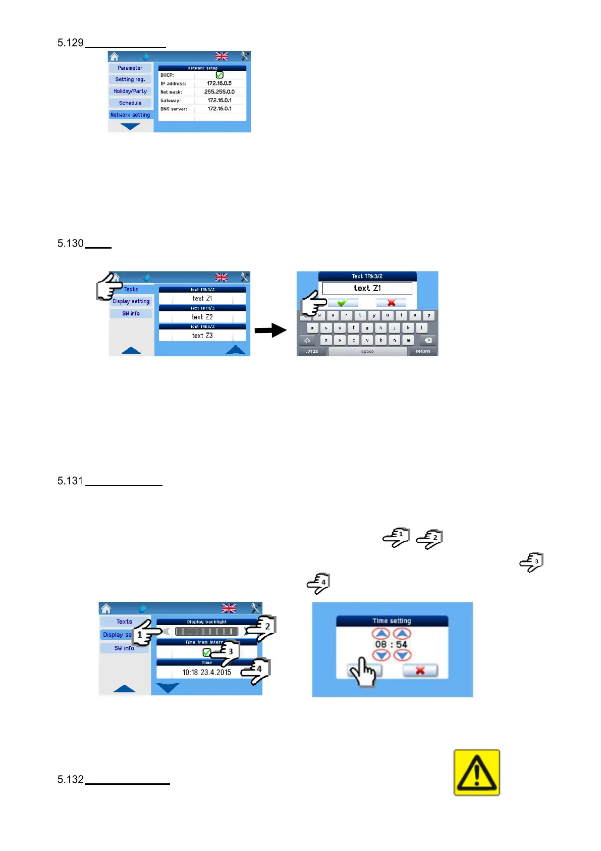 The texts can be adjusted as required and are the same as those for setting from the web. The respective text is shown in the
