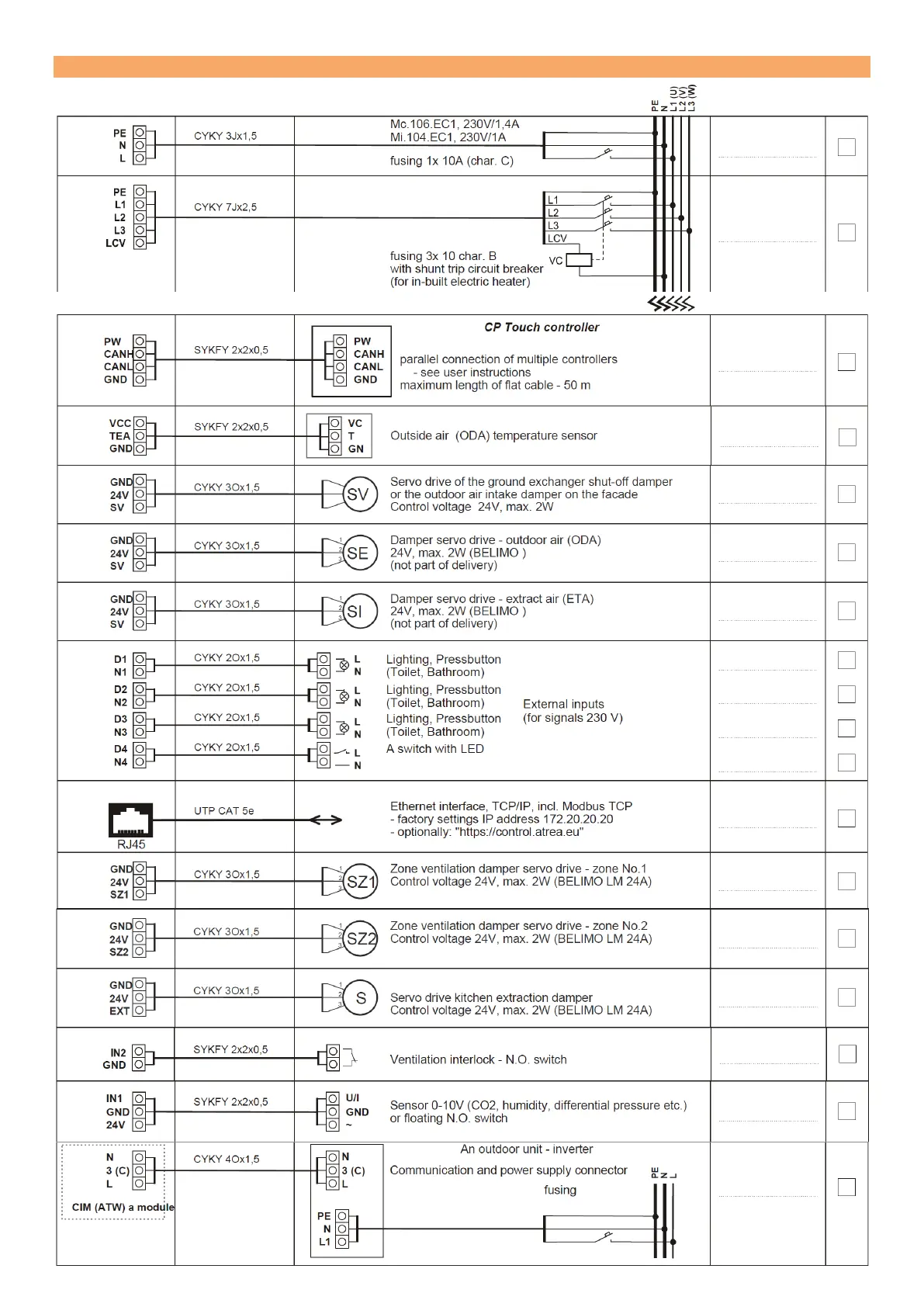 ATREA DUPLEX RA5 - 8.3 RD5 Optional Accessory Wiring