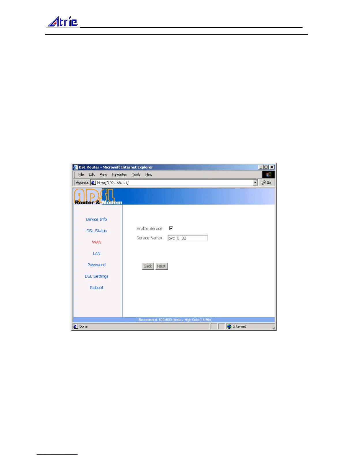 The Modem supports five ADSL protocol modes. Choose the protocol which is appointed by ISP and PVC