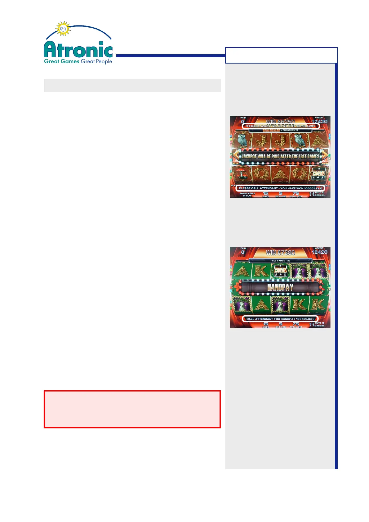 However, no handpay must be carried out at this