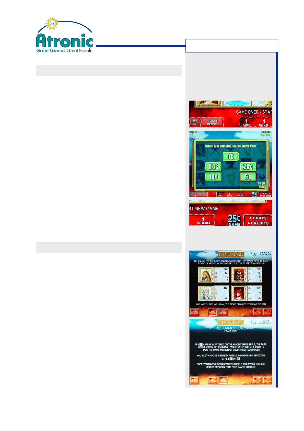 INFO SCREEN (Paytable on Screen)