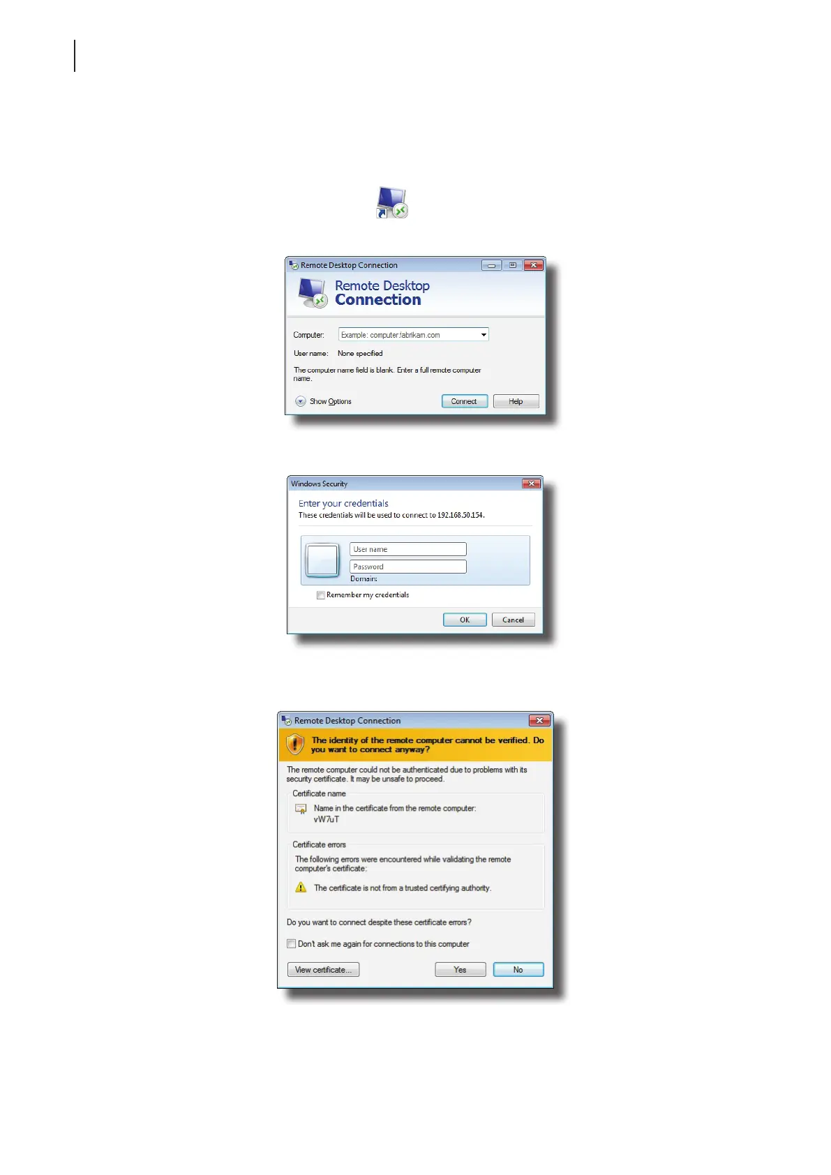 4. A window may appear with a certicate message about the remote computer. Consult your IT administrator