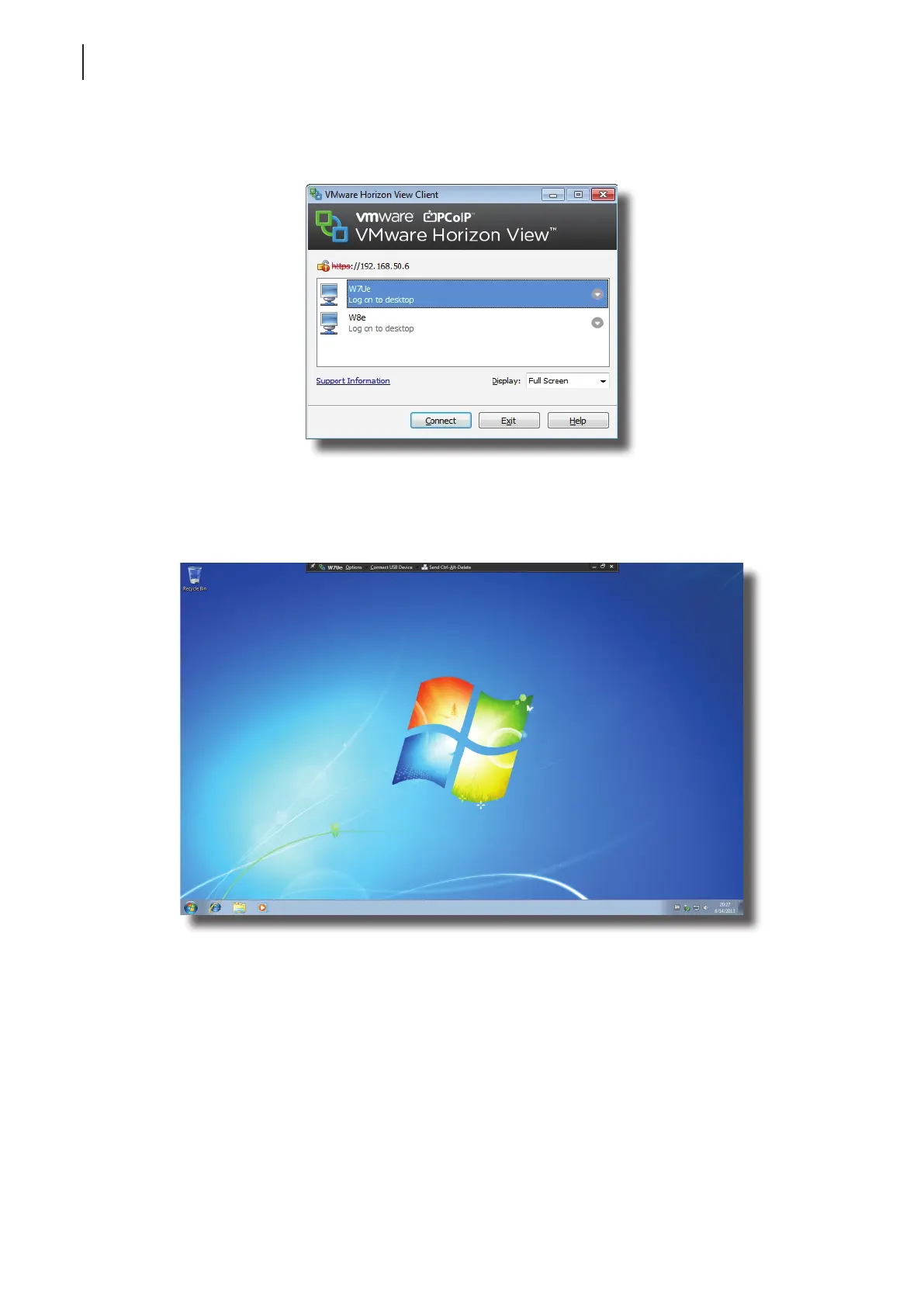 6. A window appears with available desktops for your credentials. Click to select the desired desktop,