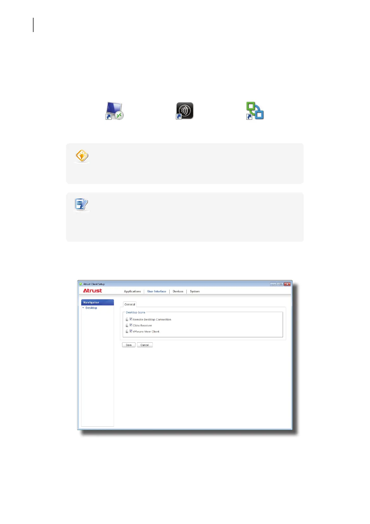 1. On Atrust Client Setup, click User Interface > Desktop.