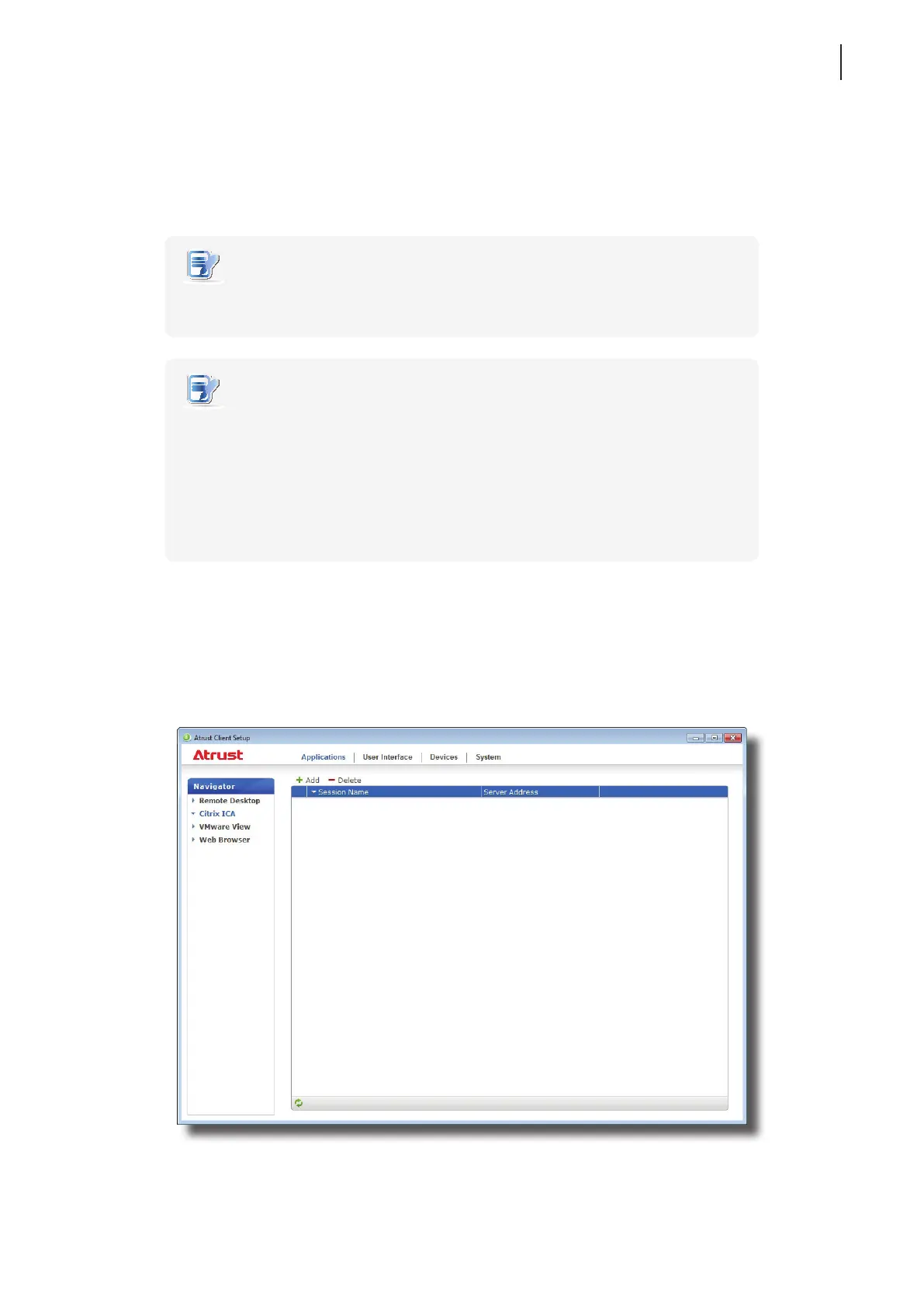1. On Atrust Client Setup, click Applications > Citrix ICA.