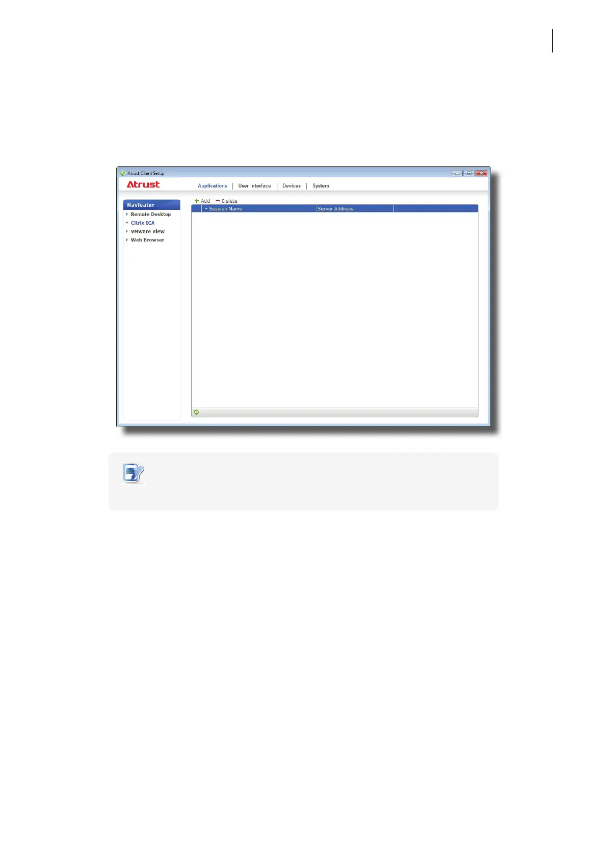 1. On Atrust Client Setup, click Applications > Citrix ICA.