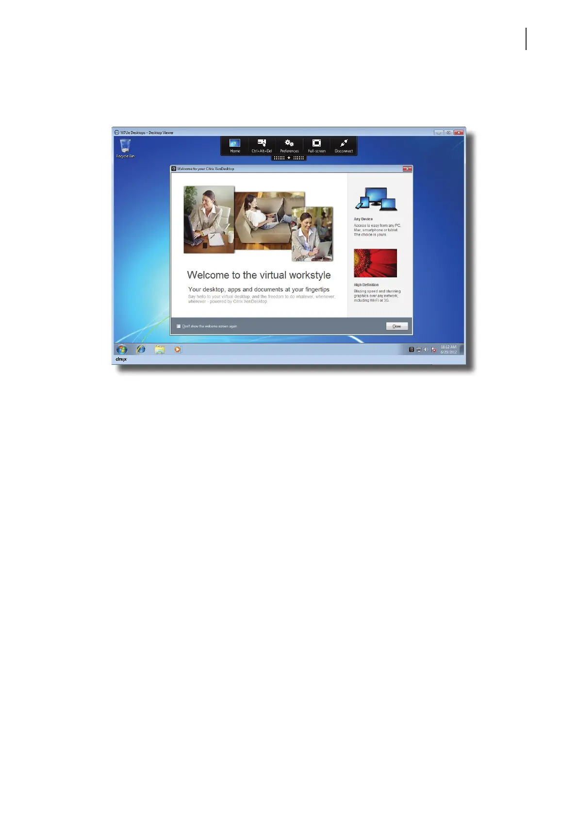 An Example of Displayed Desktop through XenDesktop 5.6 Platinum
