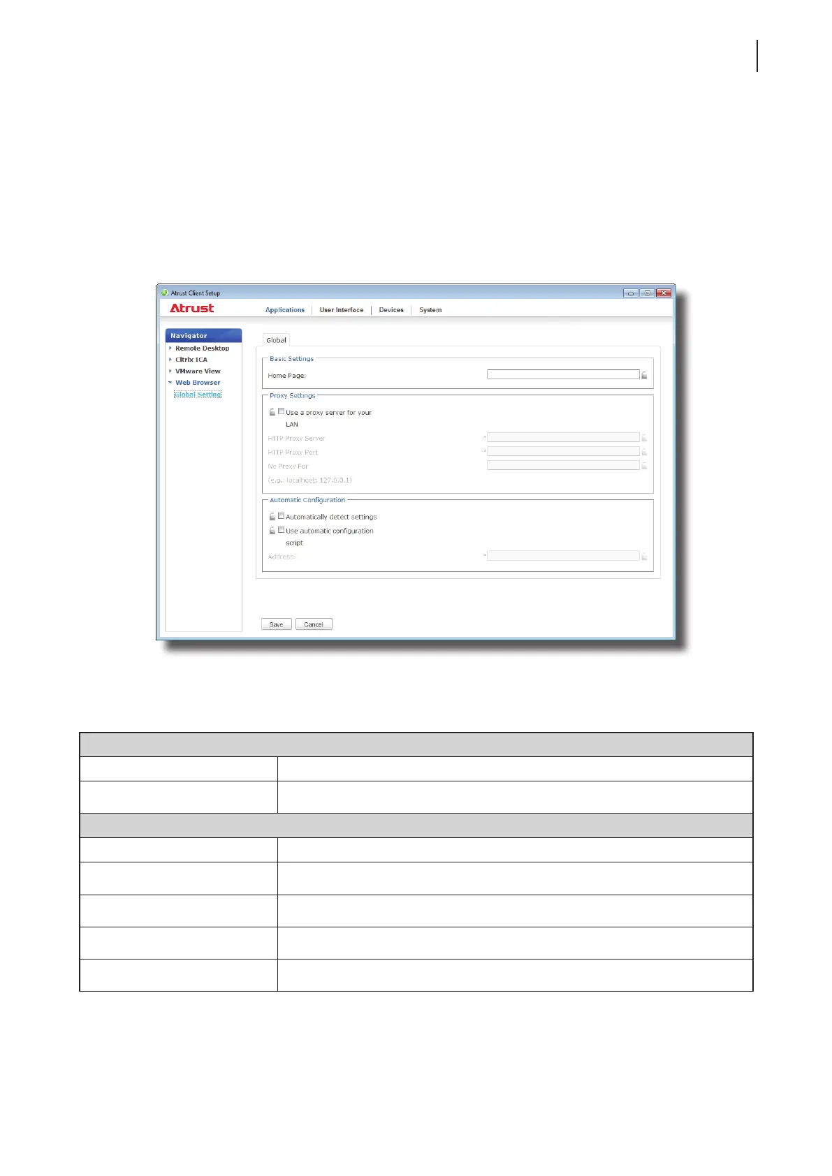 1. On Atrust Client Setup, click Applications > Web Browser > Global Setting.
