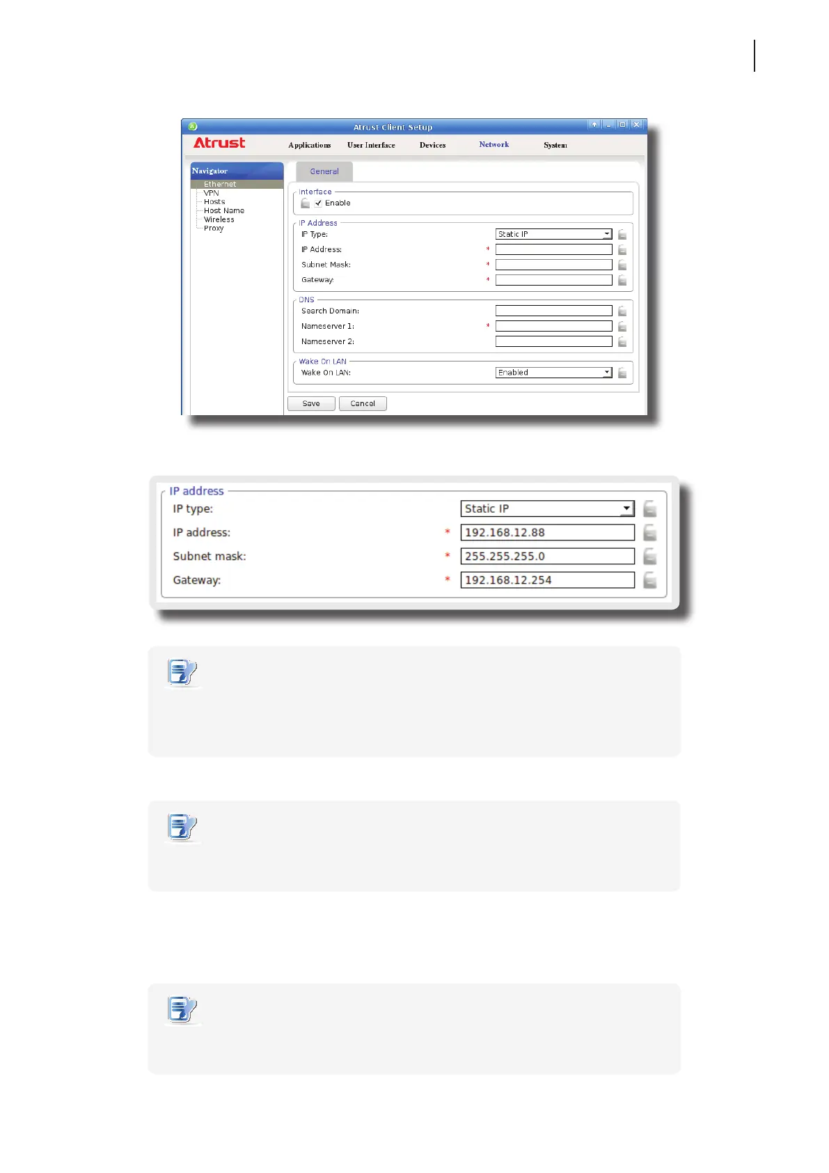 4. Type in the IP address, subnet mask, and gateway for your t180L/t180LB thin client.