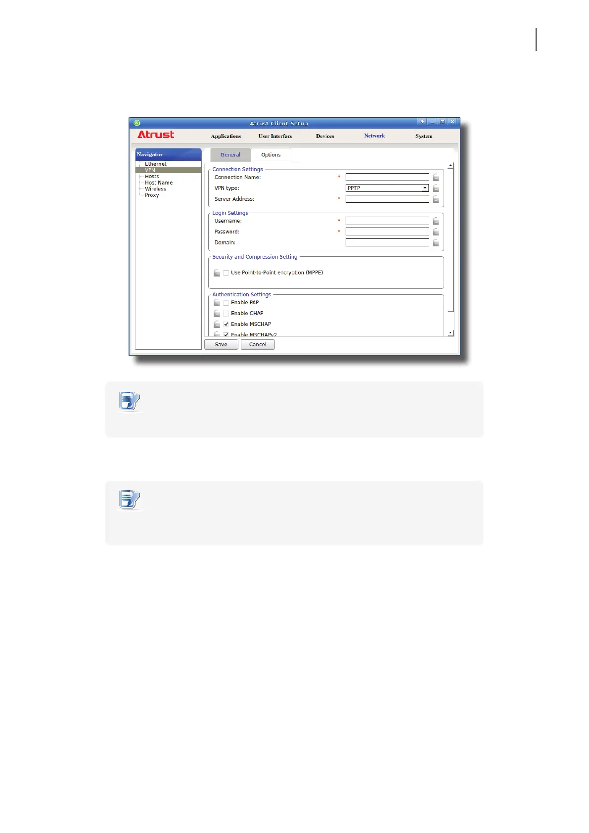1. On Atrust Client Setup, click Network > VPN to open the Virtual Private Network list.