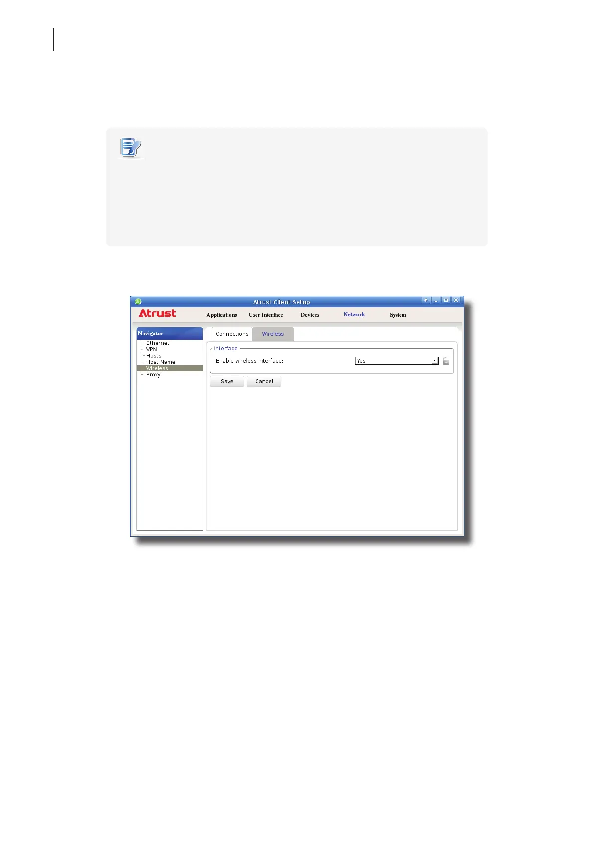 1. On Atrust Client Setup, click Network > Wireless, and then click Wireless sub-tab.