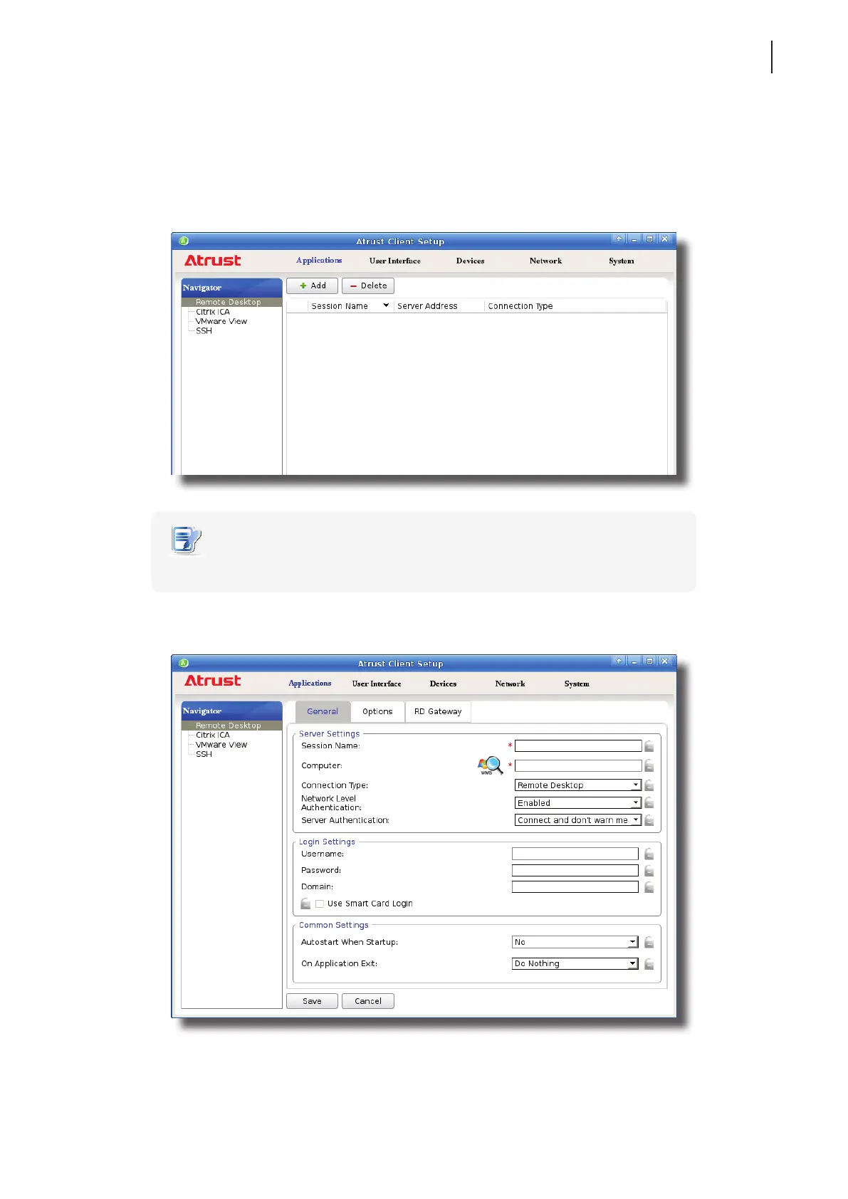 1. On Atrust Client Setup, Click Applications > Remote Desktop.