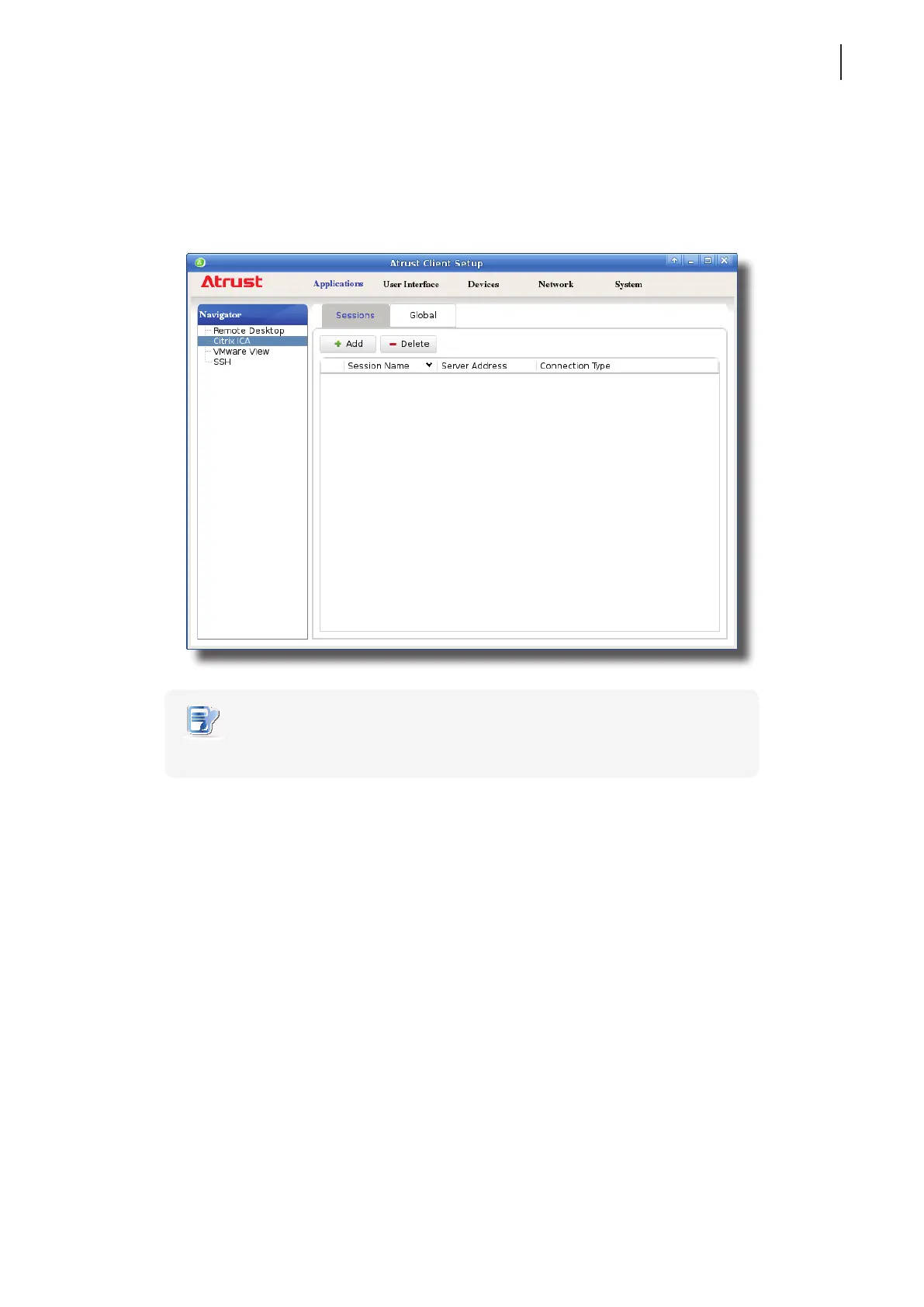 1. On Atrust Client Setup, click Applications > Citrix ICA.
