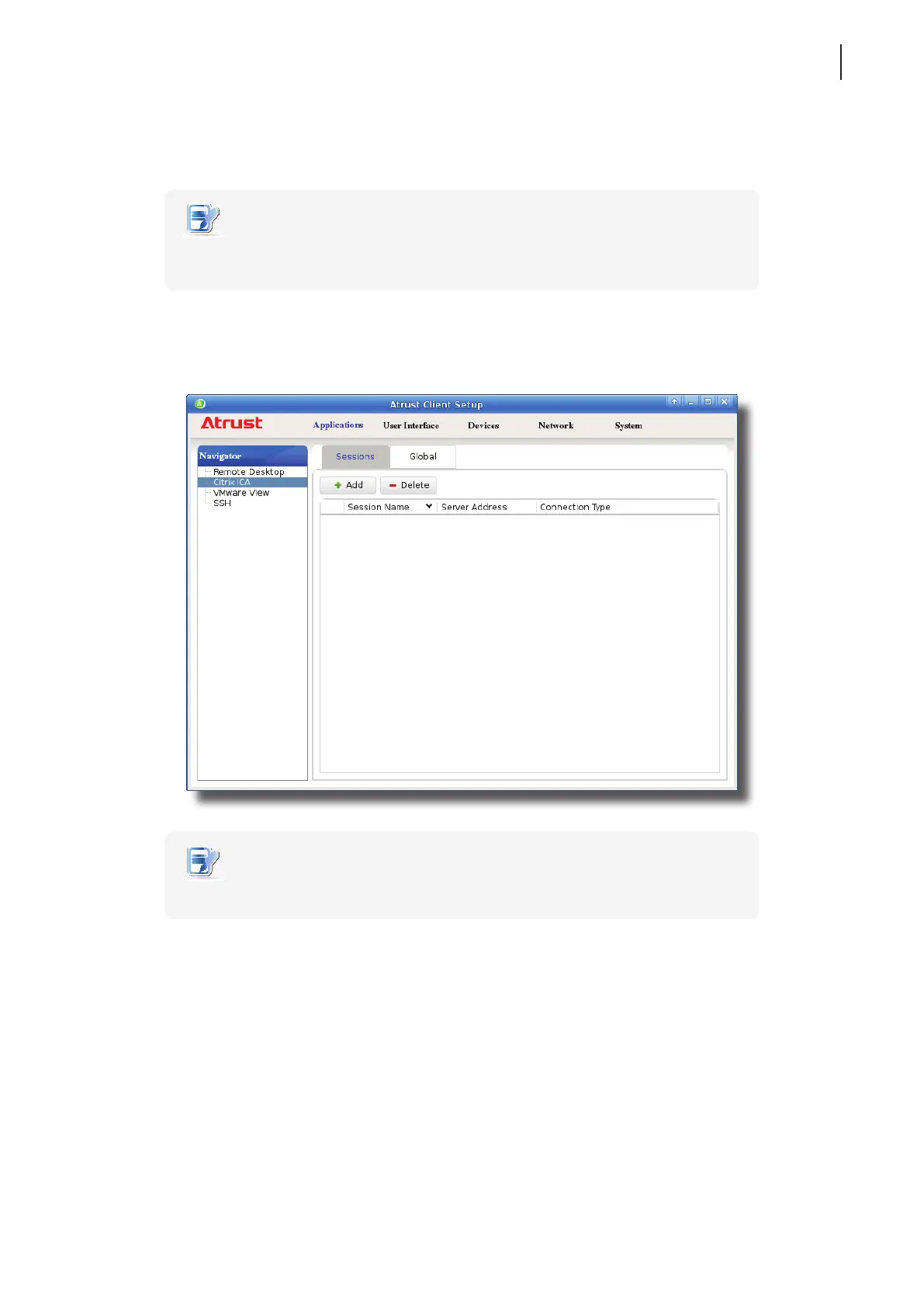 1. On Atrust Client Setup, click Applications > Citrix ICA.