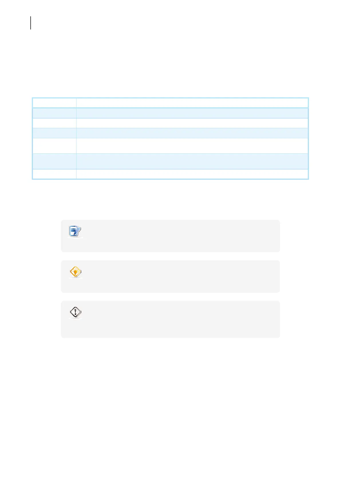 Throughout this manual, the notes, tips, and warnings in the following formats are used to provide important