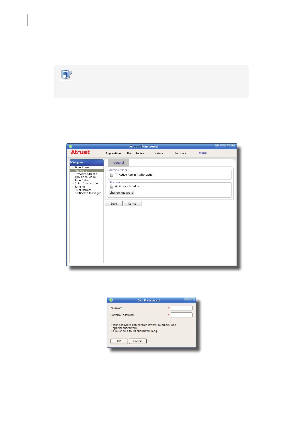 4.2.4 Conguring the Access Privileges and Passwords of Atrust Client Setup