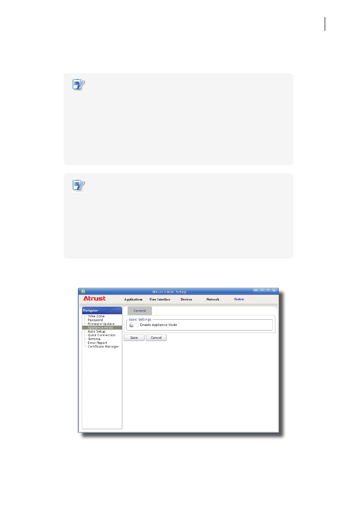 1. On Atrust Client Setup, click System > Appliance Mode.