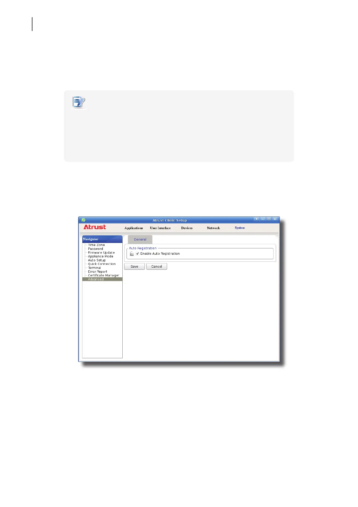 1. On Atrust Client Setup, click System > Advanced.