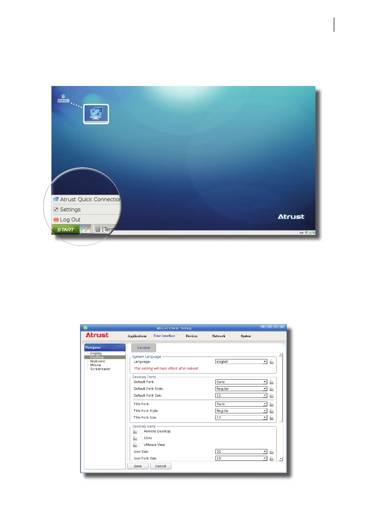 1. On Atrust Client Setup, click User Interface > Desktop.
