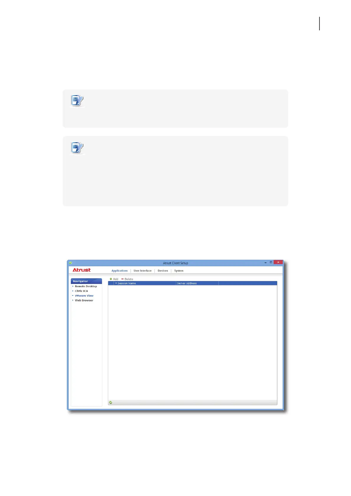 1. On Atrust Client Setup, click Applications > VMware View.
