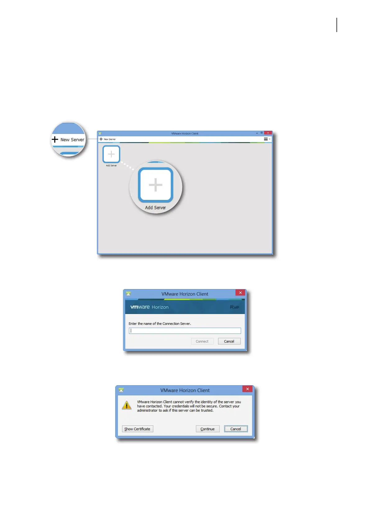 4. A window appears prompting for the name or IP address of the View Connection Server. Enter the required