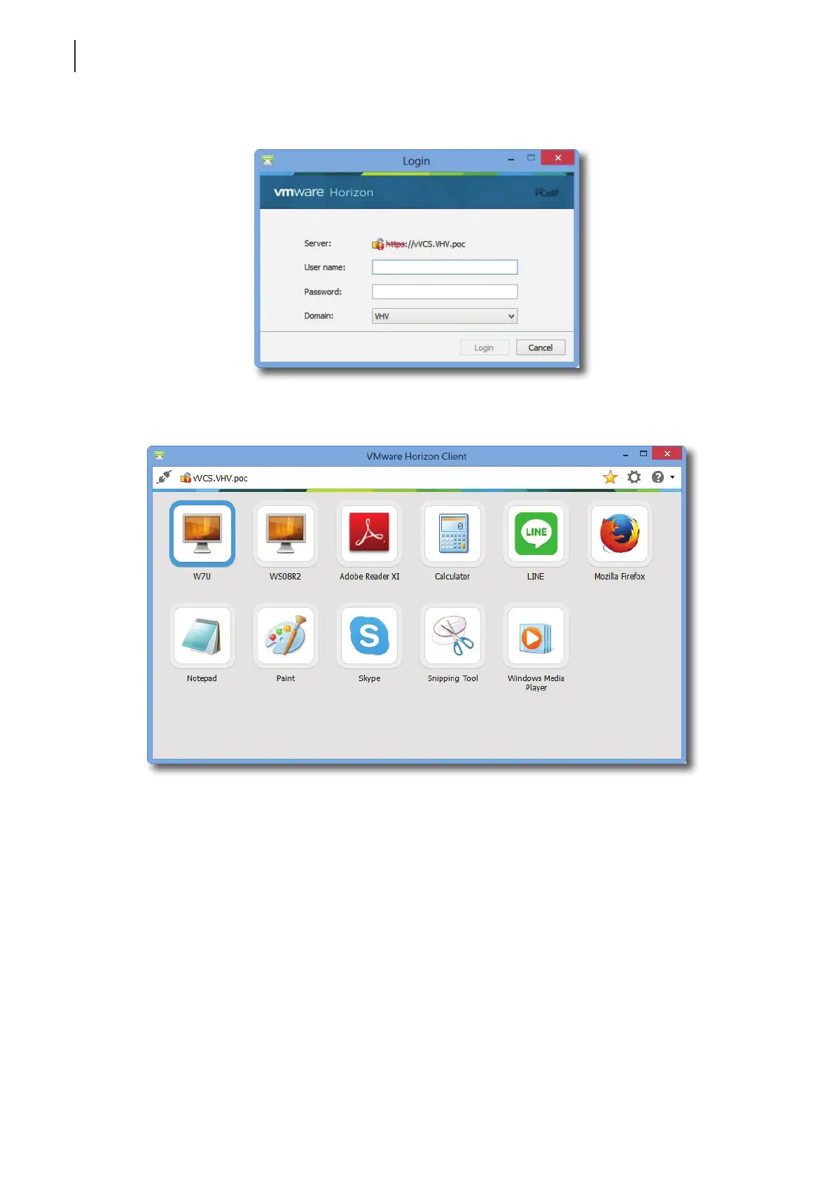 8. A window appears with available desktops or applications for your credentials. Double-click to select the