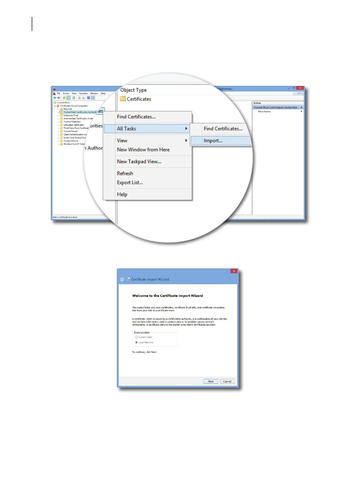 Certication Authorities, and then select All Tasks > Import on the popup menu.