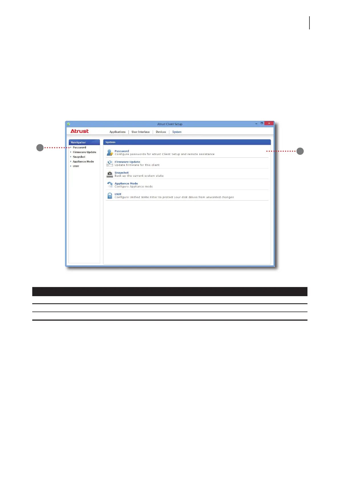 1 Navigation area Click to select a setting item under System tab.