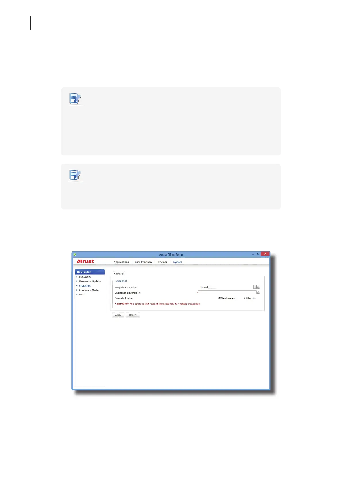 A snapshot is the system image of a client, allowing you to use that image for mass deployment. This system image