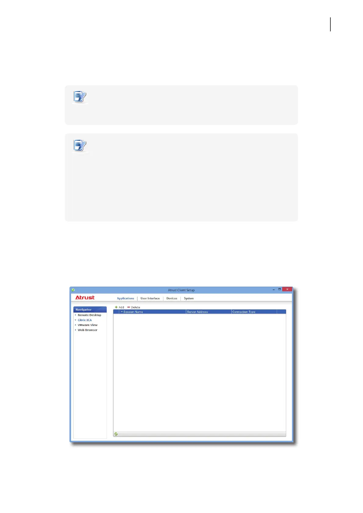 1. On Atrust Client Setup, click Applications > Citrix ICA.