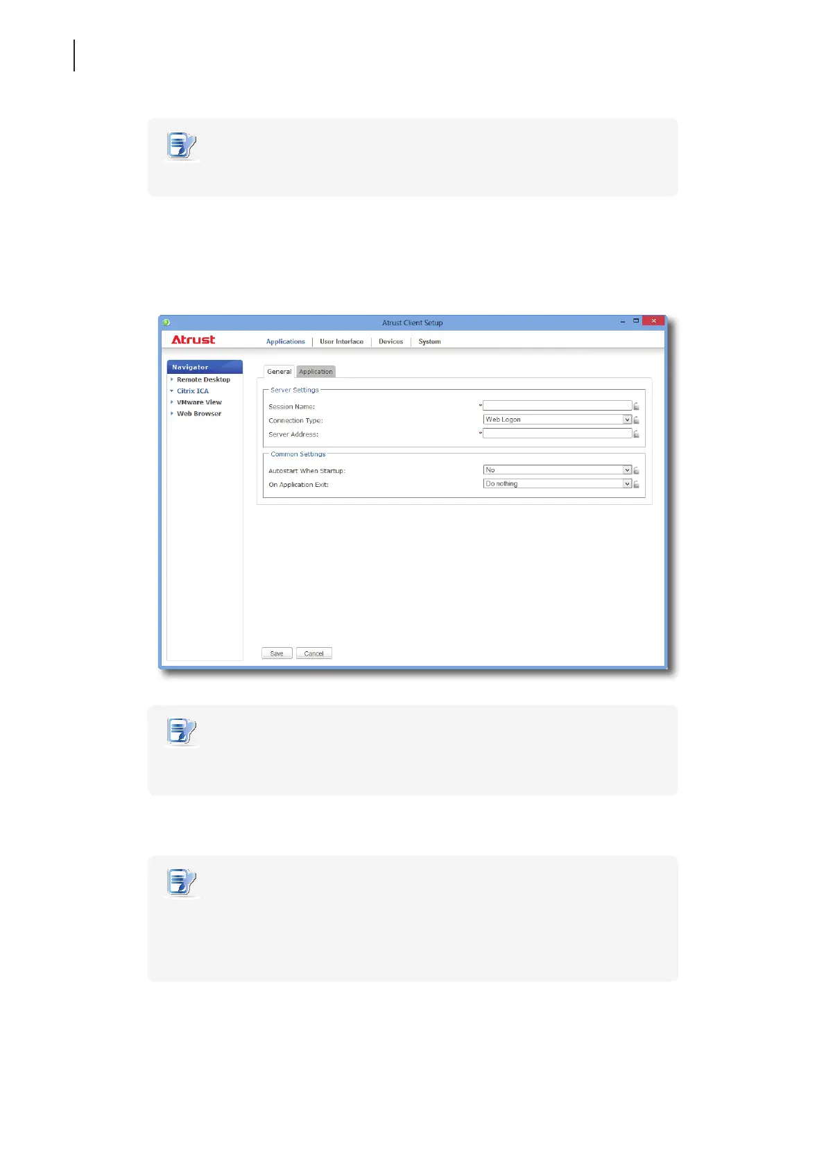 • If you haven’t create any entry, the ICA Connection list will be empty.