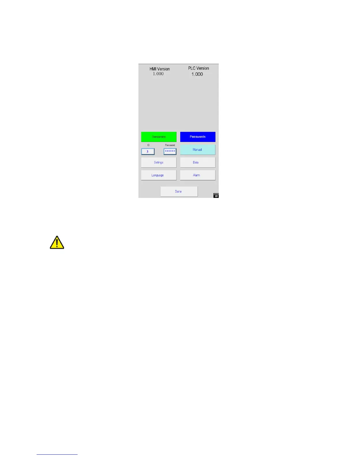 The screen will show the current version of the software in the PLC and HMI. This is very important information, and