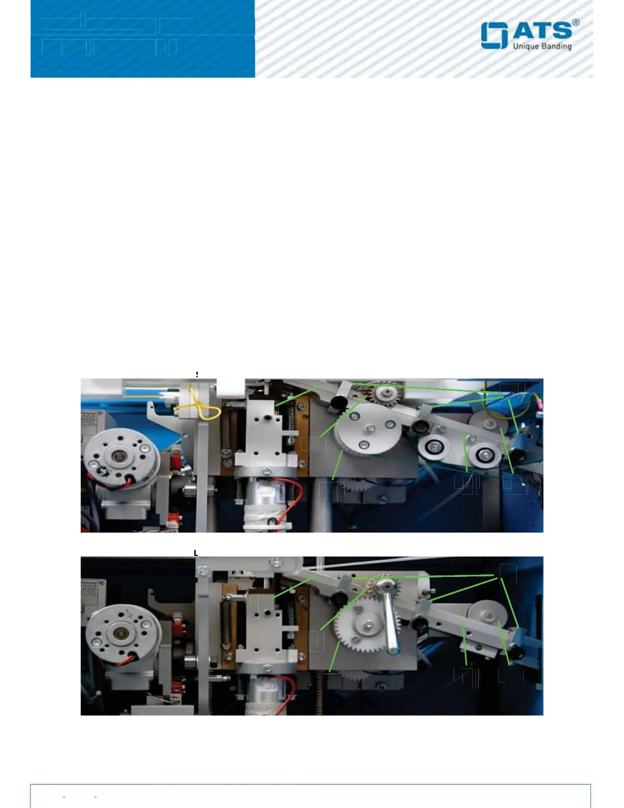 7. Carry out the cleaning: Band drive roll aluminum (E), rubber feed roller (F), feed track and feed track