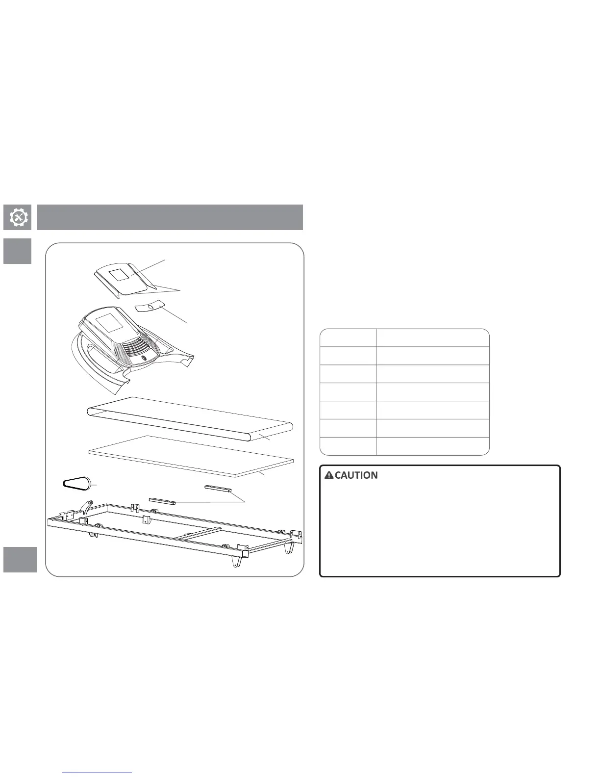 assemble the missing part. DO NOT disassemble the treadmill